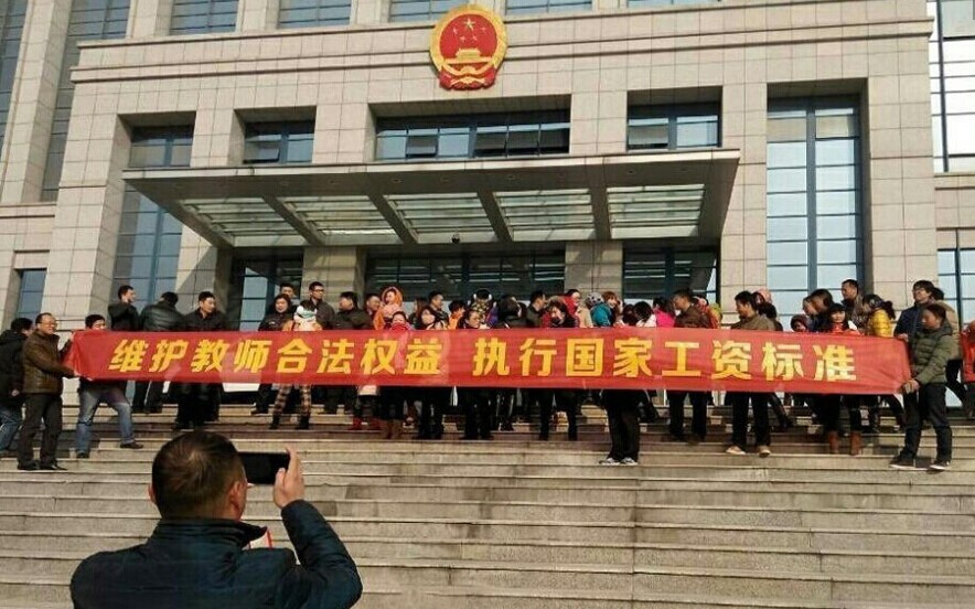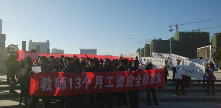 2014年12月22日上午,河南固始县近1000名教师集体罢工走上街头要说法。现场的教师告诉记者,原因是此前半年绩效工资迟迟才发,而后承诺的涨工资没有实现,每个月还要扣掉18%。