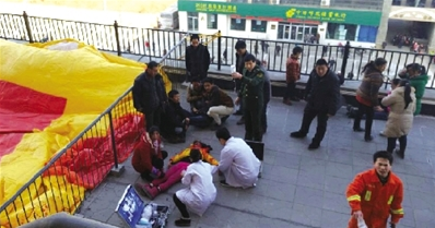 1月20日下午,河北省冀州市迎宾大道上凯隆御景楼盘前,几十位市民聚在一起,三五成群地议论着昨天这里发生的事故。
