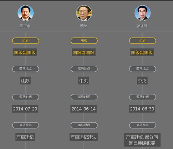 今年最受关注的案件,莫过于苏荣、徐才厚、周永康三个“大老虎”的落马。从6月中旬到7月底,短短45天时间内,三个曾经身居高位的人物因为违纪而被查处,充分阐释了何为“法无例外”。这凸显了中央反腐的决心和对腐败零容忍的态度。